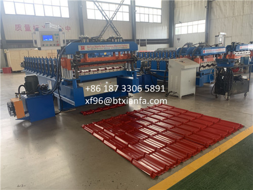 1000 Step Tile Roof Machine for Nigeria. The driven system of Step Tile Roll Forming Machine is gearbox. This Roof Roll Forming Machine also named step tile machine. Step Classic Forming Machine with high speed, up to 6-8m/min. And stations of Step Tile Forming Machine is 12. Roll Forming Machine with touch screen, Delta PLC. So the client will easily to operate. If add a Hydraulic Car Coil Holder, the production line will be perfect.