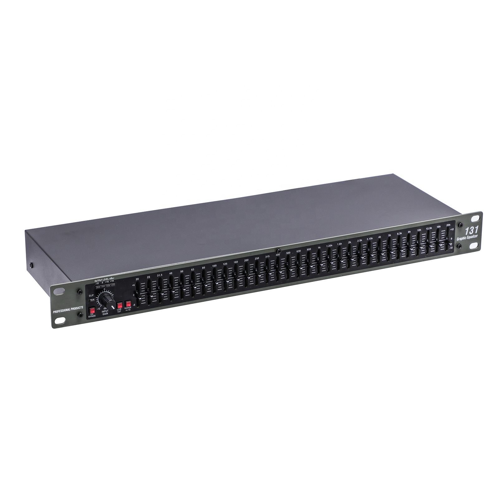 | Features | Single 31-band, 1/3-octave Constant Q frequency bands Switchable boost/cut ranges of ±6 or ±12dB 12dB per octave, 3dB down @ 50Hz low-cut filter Front panel bypass switch ±12 dB input gain range 4-segment LED ladders for monitoring output levels XLR and TRS Inputs and Outputs Internal Toroidal Transformer Frequency Repsonse of <10Hz to >50kHz Dynamic range of greater than 108dB |