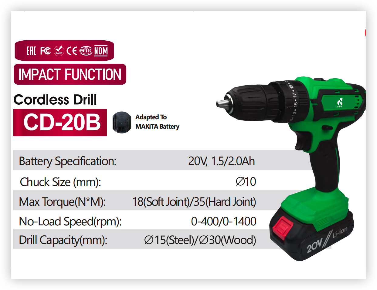Drill Capacity | 15(steel)/30(wood)(mm) |