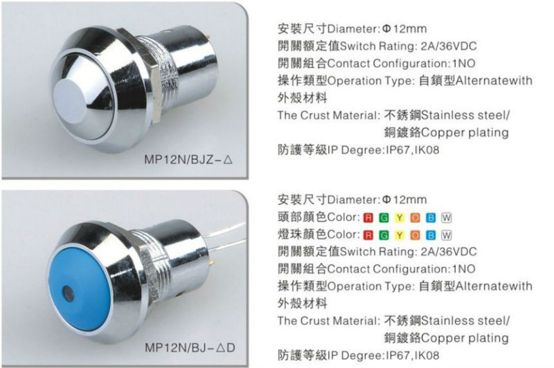 22mm Security Control System Self-locking Switch