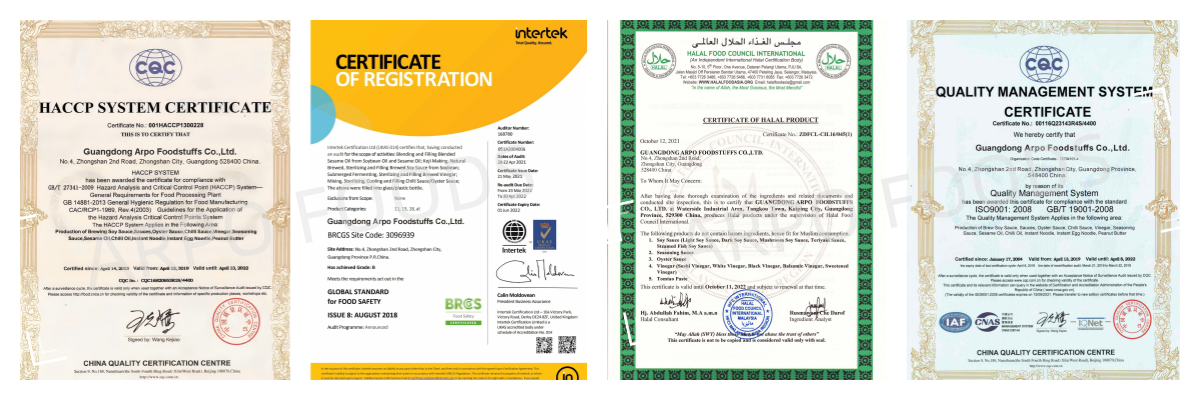 The factory,covering about 23,000 square meters, owns advanced production and filling equipment, forming a one-stop production system from traditional brewing to product packaging.Not only passing the Quality Standard Certificate,we also have been awarded ISO9001 Quality Management System Certificate,HACCP System Certificate and so on,maintaining strict quality assurance.