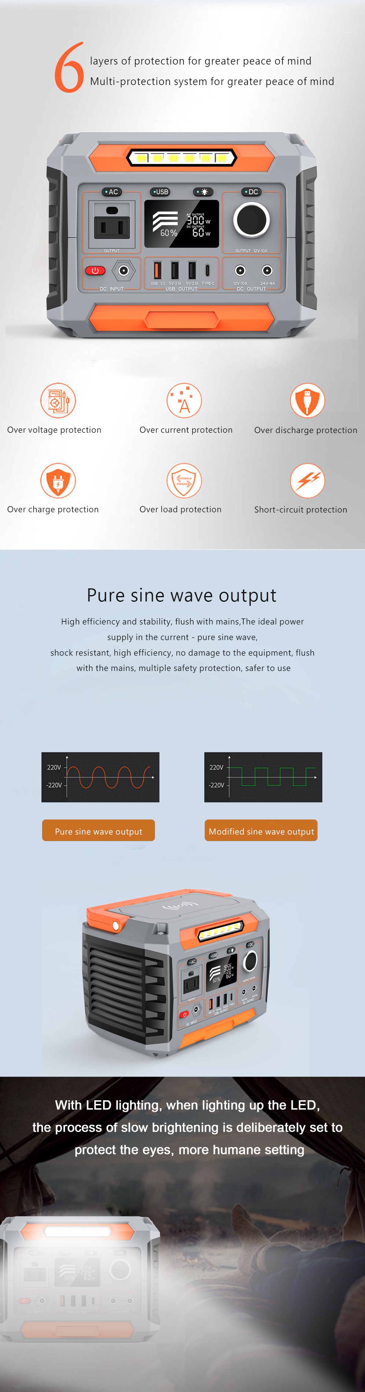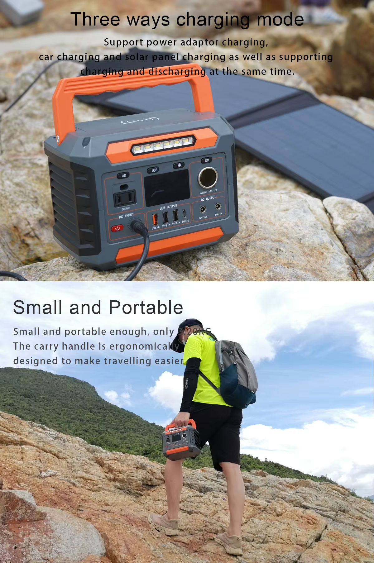 It can be perfectly matched with solar panels, and can be easily charged with high-efficiency solar panels. Easy to use at any time, portable charging station, convenient for outdoor activities;