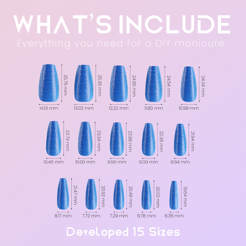 They are made with high-quality materials that are comfortable and fully customizable to your nail, using included tools. Attached with non-toxic and non-damaging glue.