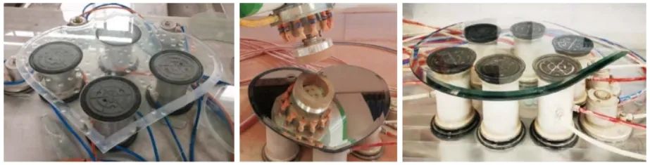 - The glass is fixed and driven to move by a multi clamps or sucker groups, so the processing and positioning are accurate.