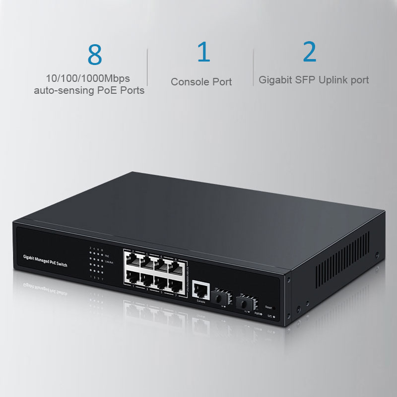 8 Port Managed Gigabit PoE Switch with VLAN Support and 2 SFP Slots for CCTV Systems1