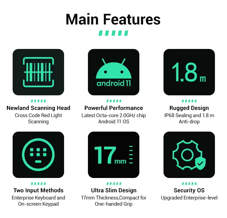 1. Newland Scanning Head,More Accurate and Faster,Not Afraid of Shabby Code & Smudge Code?2. Octa-core 2.0GHz High-end Chip,Android 11 OS, High-performance Configuration for Ultimate Productivity, Easy to Run Complex