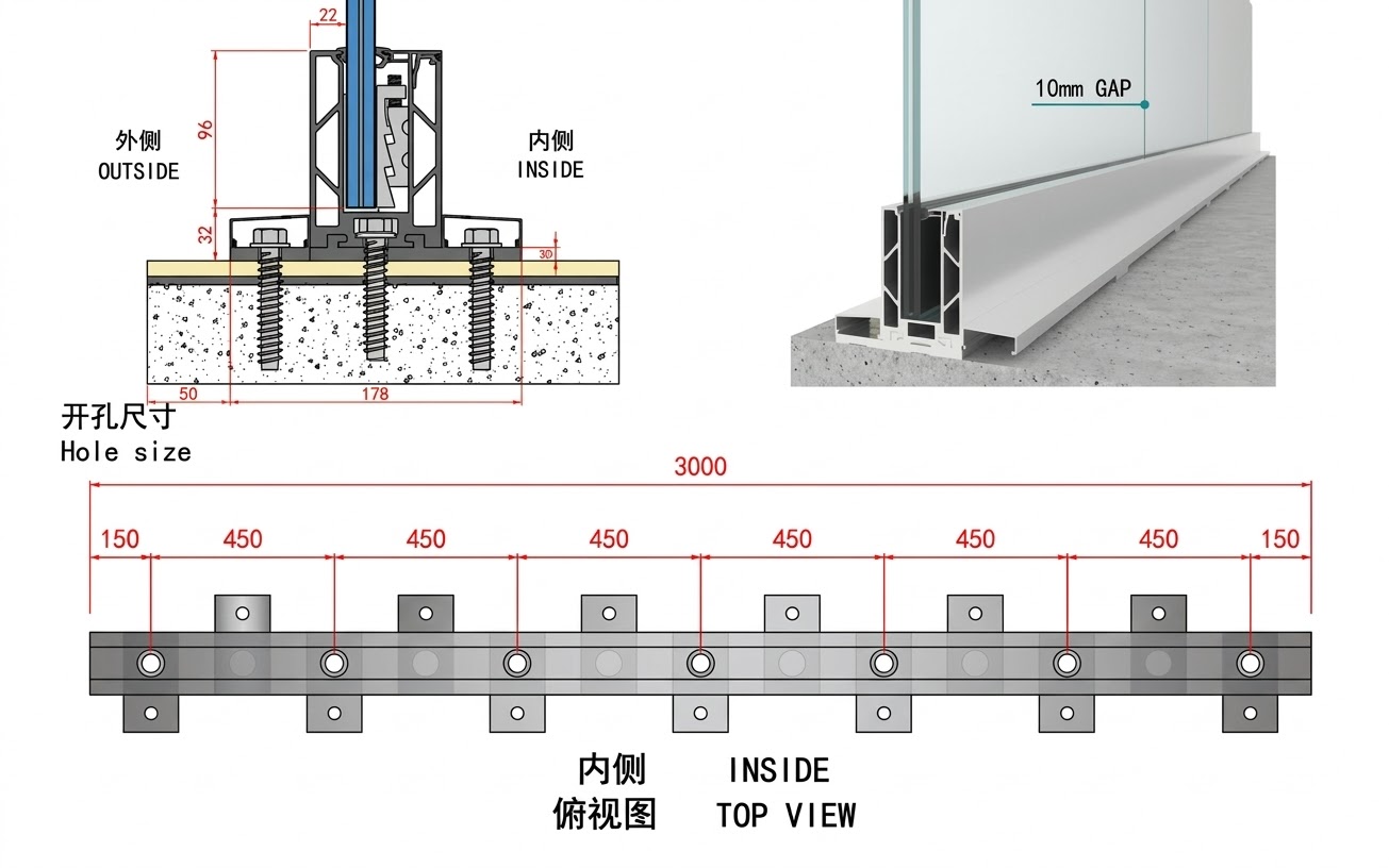 Utilizing adjustment profiles A1 and A2, installers can achieve perfect vertical alignment of glass panels with ease, significantly reducing labor time on-site.