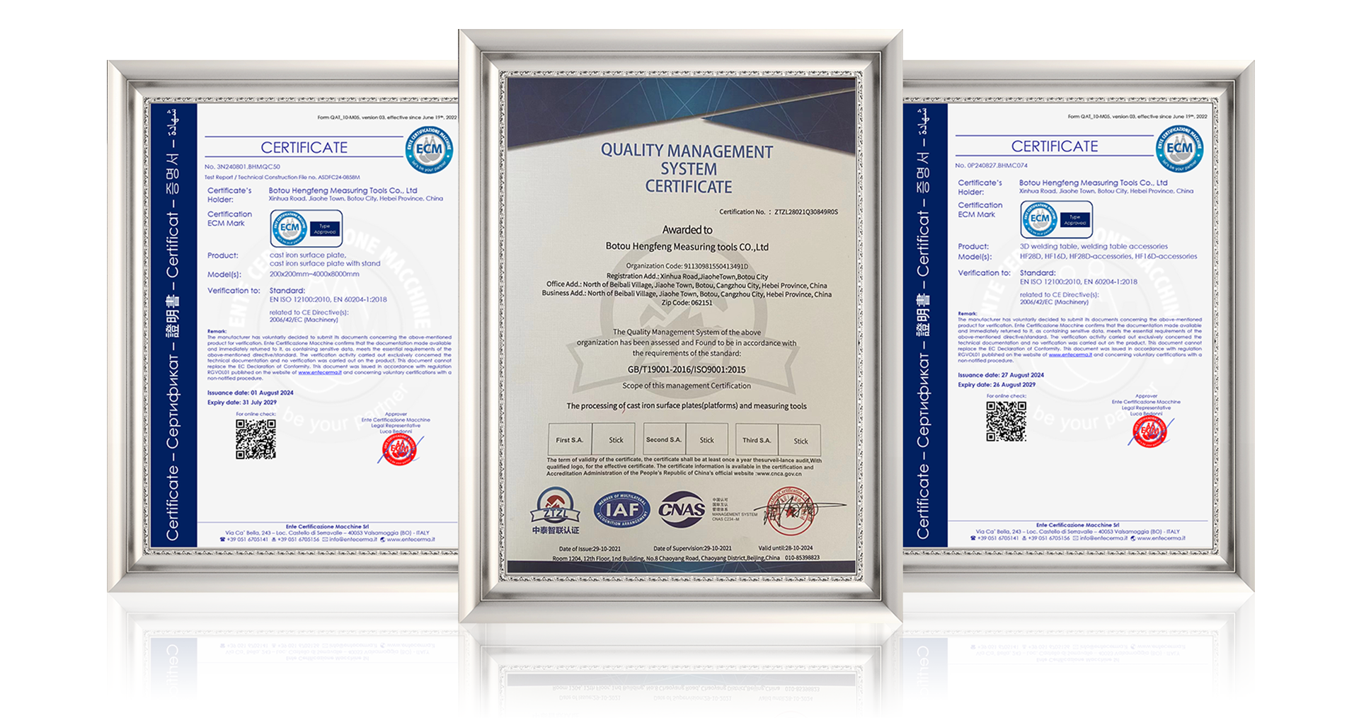 No. | Size(mm) | Verticality of measuring surface towards datum | Flatness of measuring surface | Flatness of datum | ||||||||