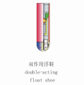 The float shoe which is connected at the end of casing string functions as guide or back pressure valve. It is a kind of casing shoe which can produce buoyancy. With the advantages of high temperture resistance, good sealing feaure and easy connection, it can be used to replace guide shoe. It can be not only used in the unclassified technical casing, oil layer casing, but also in deep well, extra-deep well and special technology well.