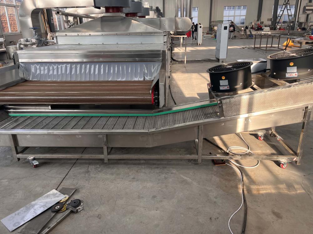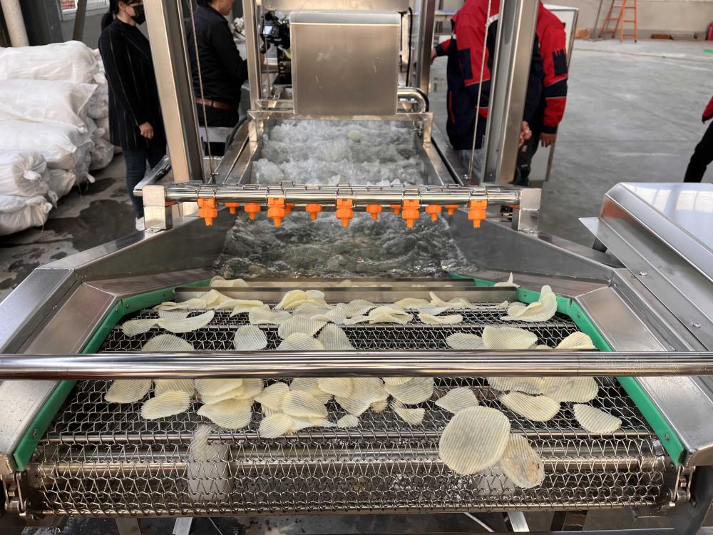Visual inspection line--lifting & feeding--slicing into chips--the first cleaning of the bubble cleaner--the second cleaning of the bubble cleaner--air drying and water removal---distributing machine--dryer---conveyor belt-- Air cooling machine
