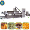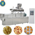Corn puff snack food machine adopt corn, rice, wheat, oat, barley etc as ingredients to make puffed snack. Through frication of screw and barrel, the grains are cooked in the extruder. Forming is at the die face cutter. The product shape is determined by a combination of the die aperture, including ball, tube, stick, ring, fruit loop, star, wheel and flower etc.