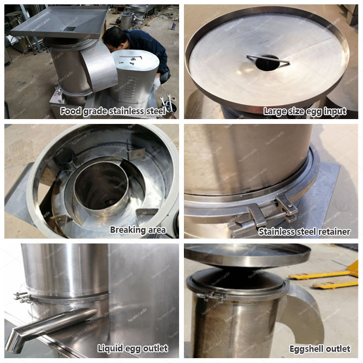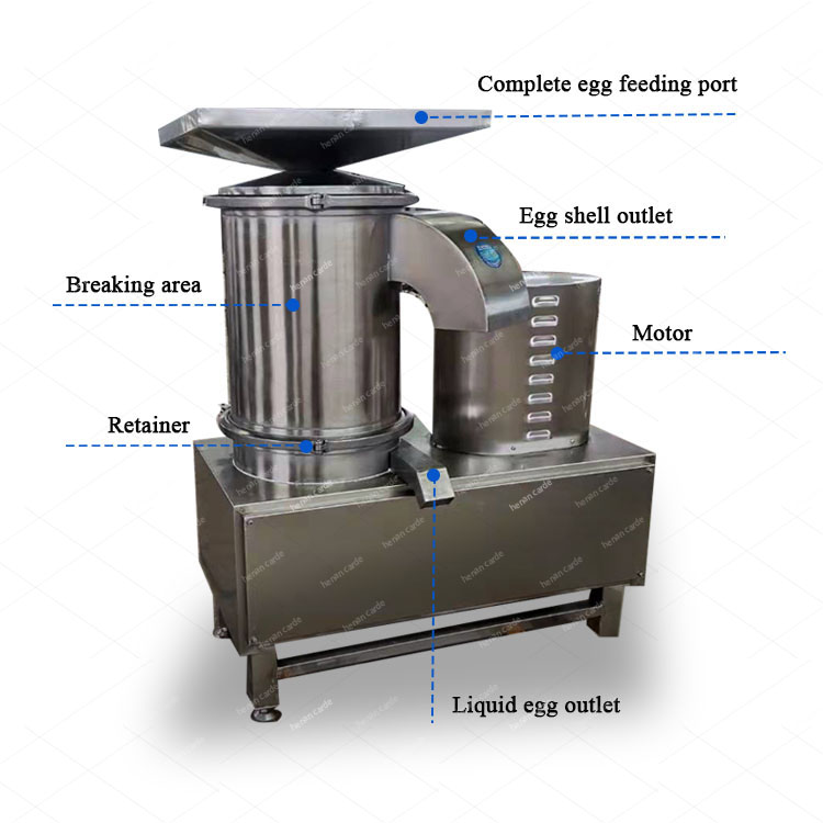 The operation is simple, just put the cleaned eggs into a funnel, crush the eggs through the centrifugal effect generated by accelerated rotation, and the egg liquid flows out of the outlet through the filter screen to ensure quality and quantity. | ||||||||