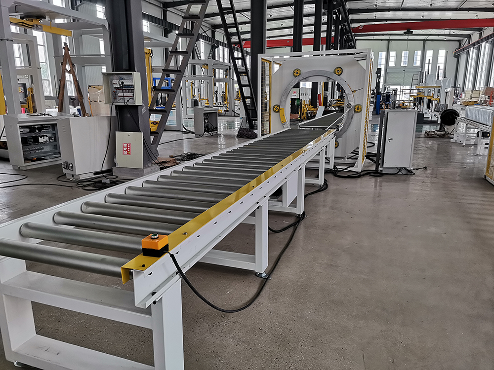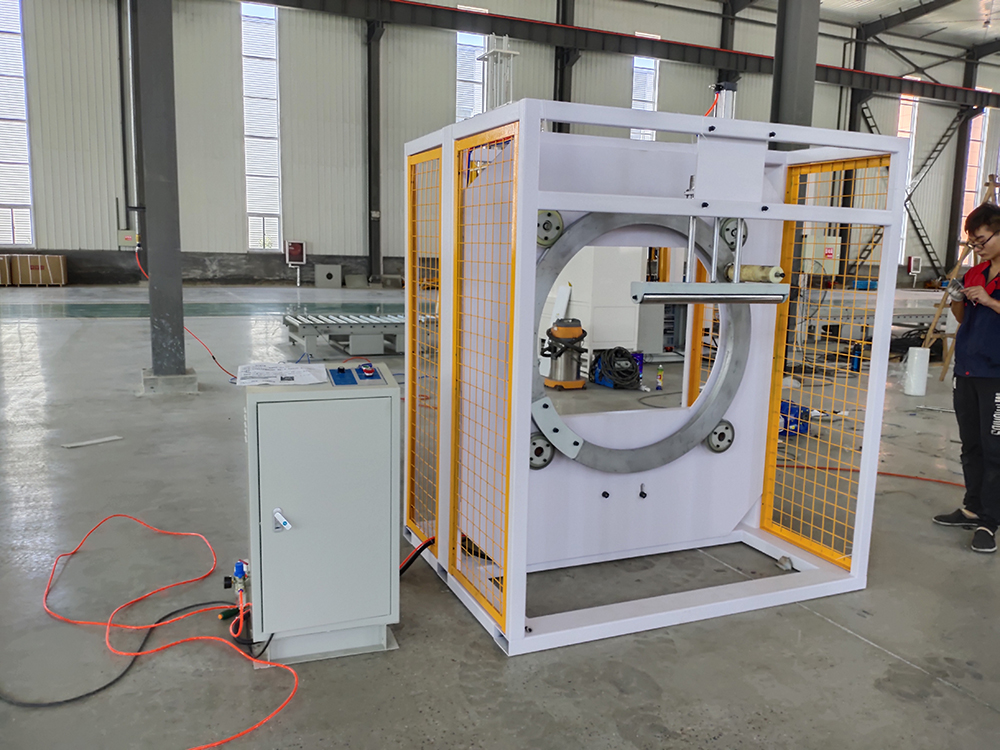 1. Full automatic, special design for long products like pipes, timber etc; low consumption energy; Touch screen, PLC easy operation control;?Auto film cutting and grab unit.
