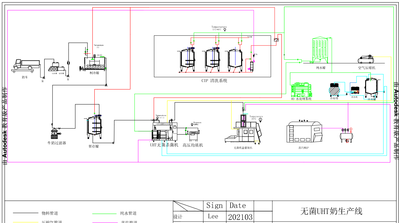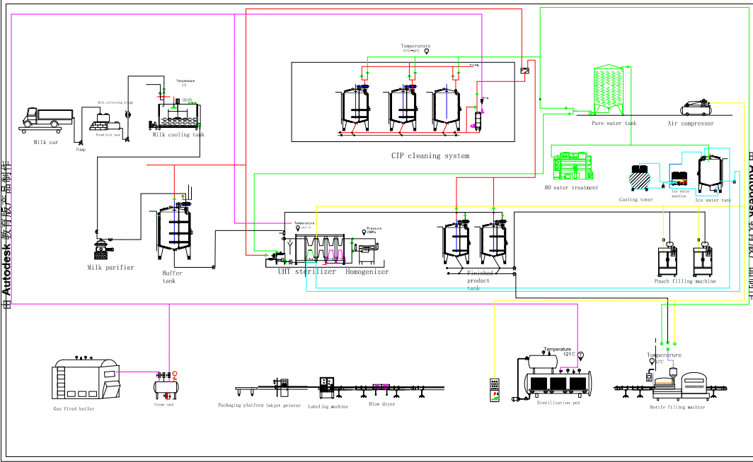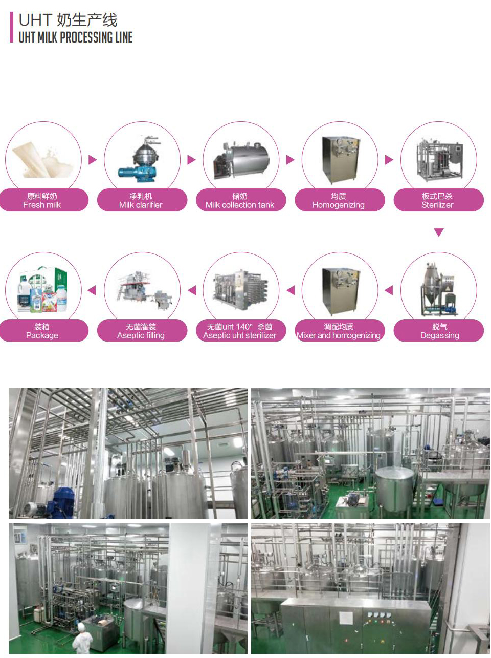 The milk processed by UHT production line can be stored for a long time without deterioration, and the milk quality is stable without refrigeration. It can be used with aseptic filling machine.Production line introduction: