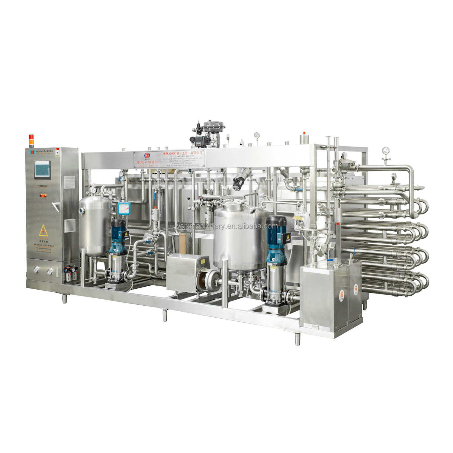 3. The purpose of UHT is to kill all microorganisms (including propagules, pathogens, non pathogens and spores).Generally, the sterilization time is 4-10 seconds and the sterilization temperature is 135-140 ℃. In the first stage, the milk was preheated to 80 ~ 85 ℃, which was helpful to the thermal stability of whey protein. The second stage is to heat the milk above the boiling point to 135 ~ 150 ℃ and completely kill all microorganisms. Raw materials: fresh milk, milk powder Production: UHT whole milk, UHT skim milk, UHT flavor milk Capacity: 500-10000l / h Final product packaging: aseptic brick carton, pillow type packaging bag, plastic bottle