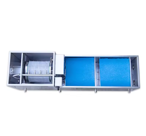 - 75 μm SS-316L rotary drum – automatic, sensor-triggered back-wash removes fish waste, leaves and micro-algae without daily hand cleaning.