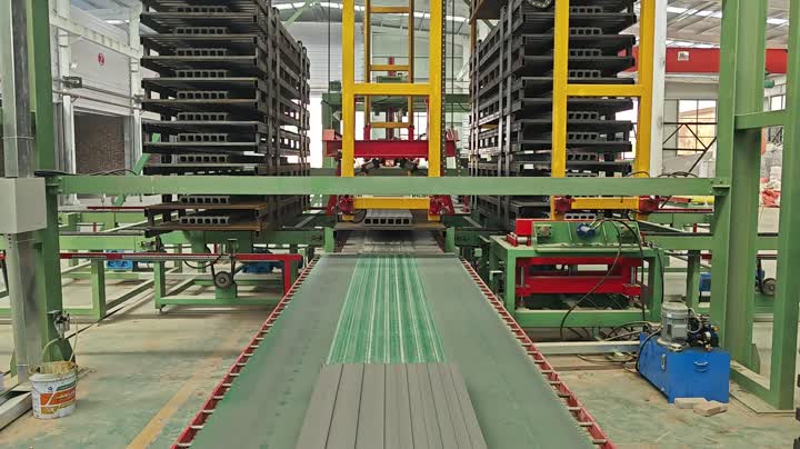 According to the product specifications and production requirements, we design and provide fully automatic billet coding machine, which is used to organize the dried brick in a fully automatic way and automatically place it on the kiln car by rotating chuck. The whole system is fully automatic operation, controlled by Siemens PLC system, and can be configured with 1 to 10 chuck according to the production requirements.