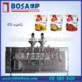 pre formed pouch filling machine? ? Features Different filling devices can meet to pack different material like powder, liquid, granule, sauce, etc Multiple fashion bag shapes, various sealing patterns and a variety of filling method Wide pouch type, one machine multiple packing Swift, precise and sanitary packing for products as required. Application?scope With?different?filling?device to match, the machine is suitable for packing various products in different form like liquid, powder, granule and solid, etc, so that can be widely used in the industry of food, beverages, cosmetics, household products and chemicals. ? Technical Specifications Model | BS-210G |