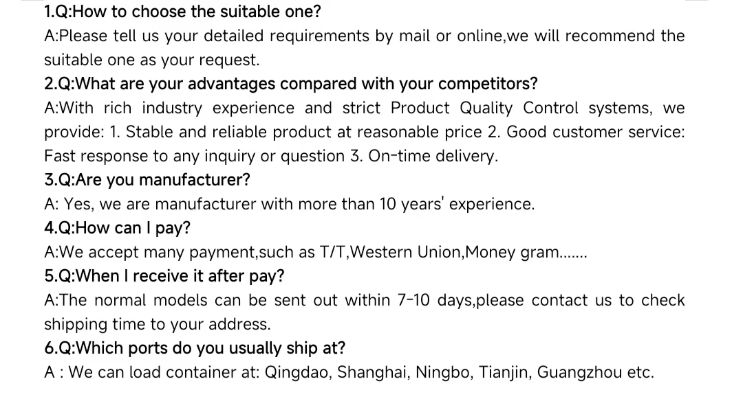 Type | Model | Size(mm) | Power(kw) | Weight(kg) |