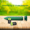 2. Powered by on 2*D batteries, A set of batteries should last 4-6 months. Check regular and remove if the ground becomes waterlogged or frozen.