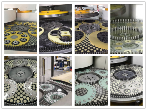 When the machine is working, upper and lower grinding discs as well as the planet wheel rotate simultaneously to drive work pieces to do reciprocating planet motion between the two grinding discs. Various grinding materials such as super hard abrasive: Diamond grinding plates, CBN(cubic boron nitride) grinding plates; Conventional abrasives: Cast iron plates, GC plates, etc can be adopted for different requirements of various products, so as to achieve double side precision grinding on work pieces made from various materials. Our equipment take advanced probe side measurement and Sony size measuring controller to realize real-time online measurement control on processed work pieces.
