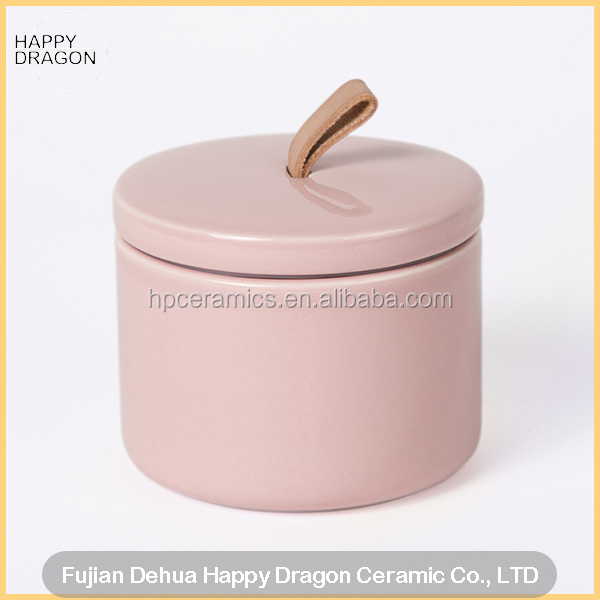 Leather Pink Ceramic candle container with ceramic lid,Ceramic candle jar, Ceramic candle canister, candle container,ceramic candle cup made out of ceramic Taking simple goods and making them beautiful. That's why this candle containers was made by hand and is meant to be a permanent piece of art in your home, even after the flame is long gone. Just wipe out an excess wax and reuse the container however you fancy.?