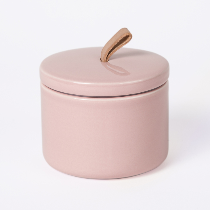 Ceramic Candle Container with Lid - Leather Pink1