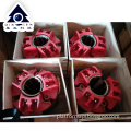The three-piece slip is composed of three fan-shaped slip bodies. The three slip bodies are hinged to each other with hinge pins, but they are not closed. The drill string can enter and exit freely. Each slip body has a circumferential dovetail groove and is equipped with Liners and kava teeth. The slips can be used for different drill strings to a limited extent by changing the liner and slip teeth. When the slips hug the drill string and sit in the center of the turntable, the slips fit tightly with the drill string, and the drill string is stuck. When the slip is lifted, because the tooth pin of the slip is slightly inclined upward, the surface of the insert of the slip can easily disengage the drill string, and the drill string can be raised and lowered by lifting the slip.In wellhead operations, drill pipe slips, collar slips, casing slips and safety clamps are often used together.