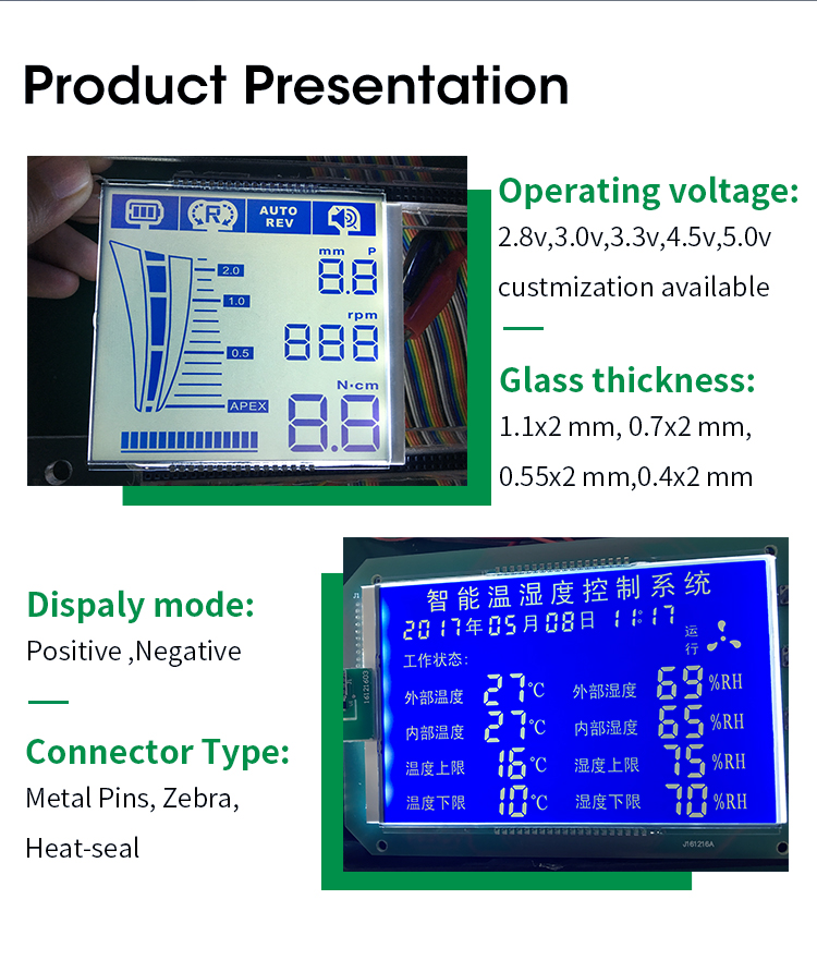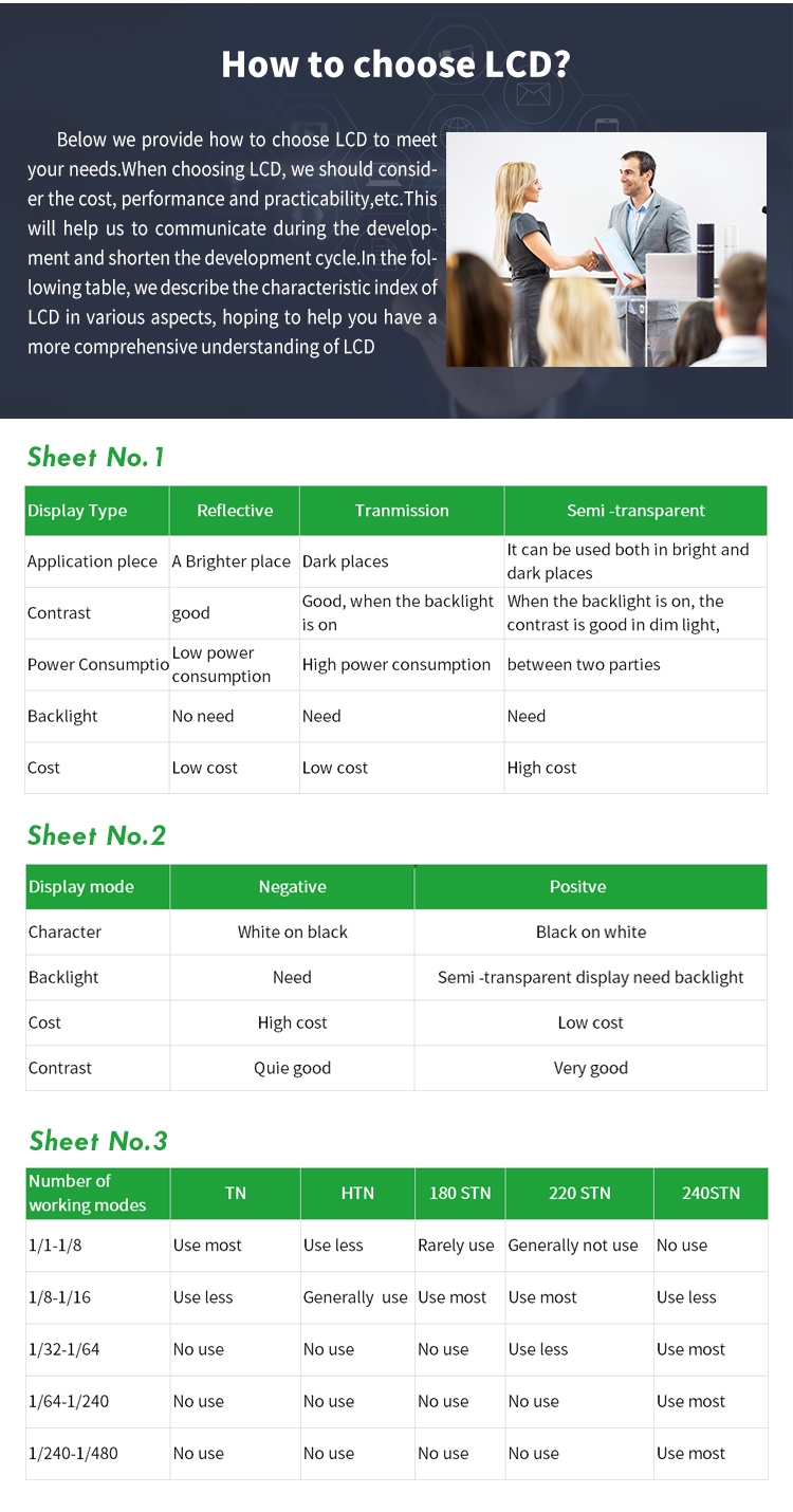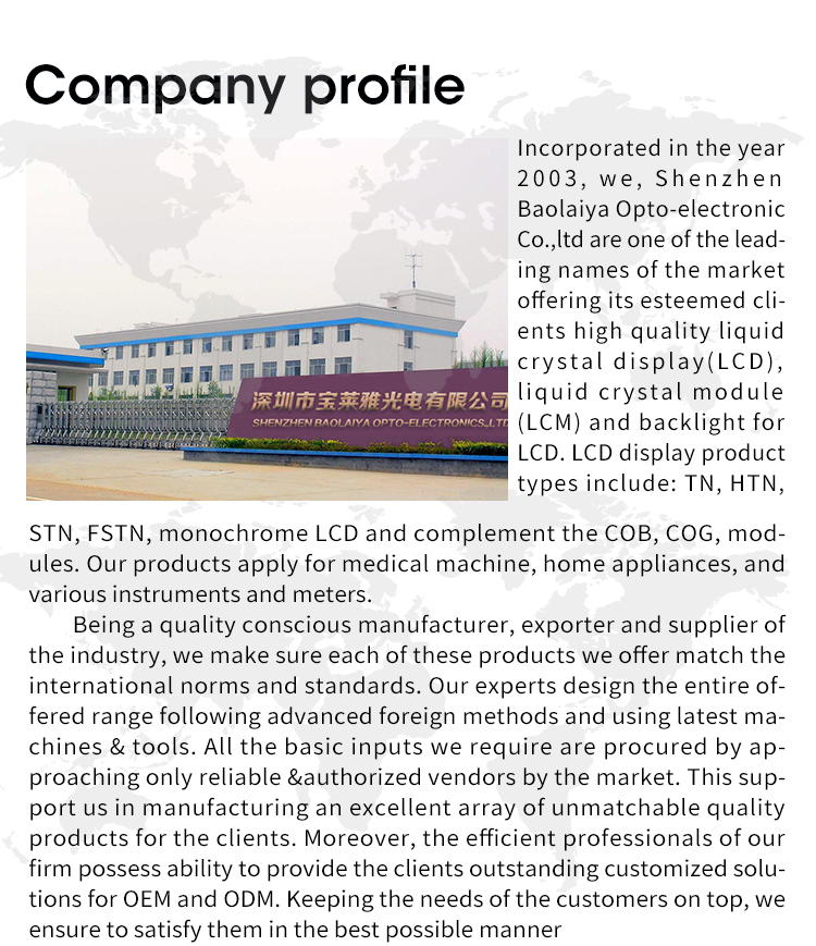 LCD Type | TN, HTN, STN, FSTN, VA, COB, COG,COF,LCM |