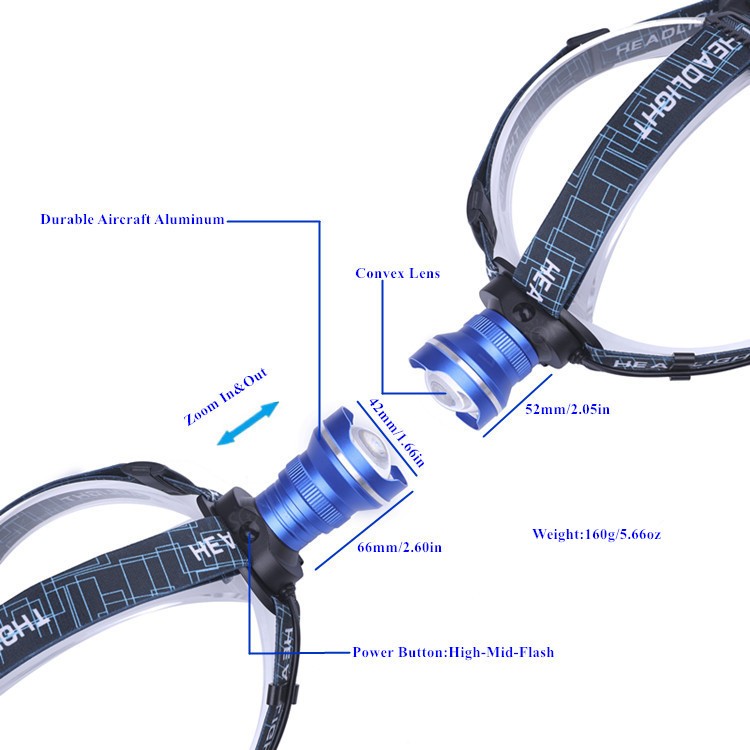 Cool popular design aluminum telescopic zooming focusable 10W T6 led headlight 18650 lithium USB rechargeable headlamp for gift1