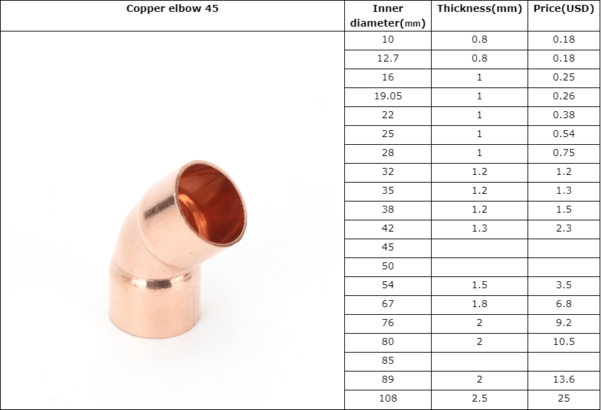 | Model Number | yh-11, 45 degree copper equal elbow copper pipe fitting |