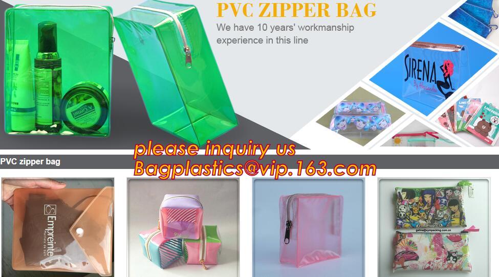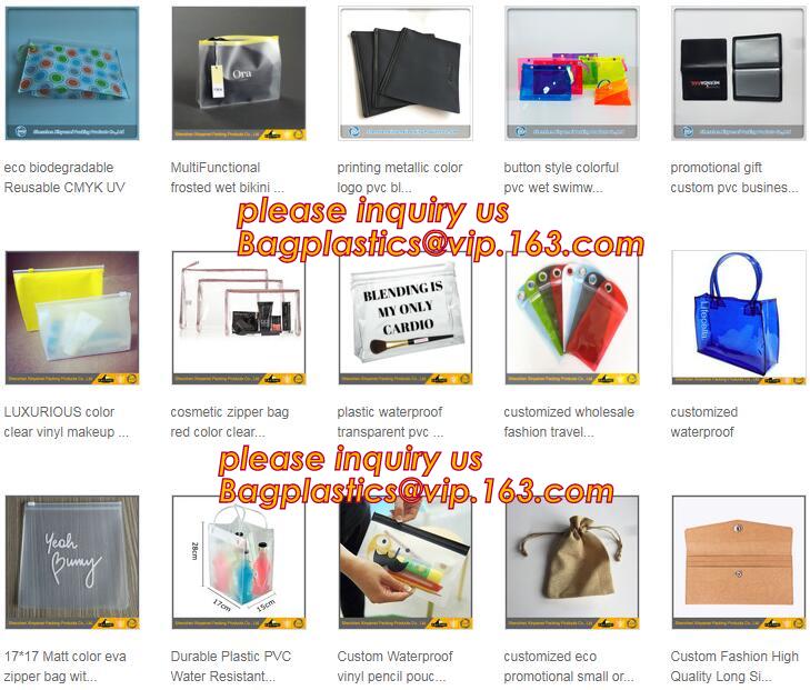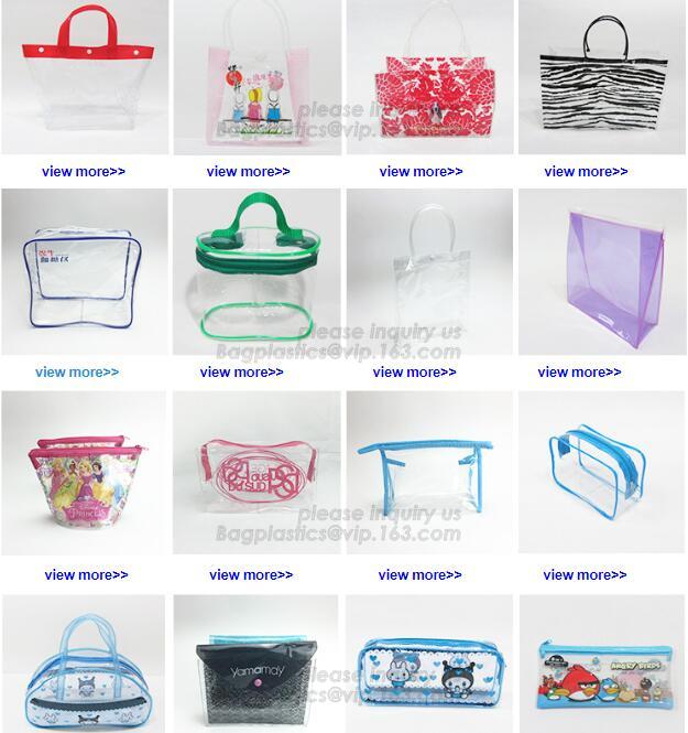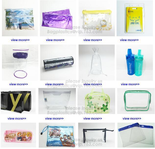 PVC zipper bag, PVC cosmetic bag, clear PVC bag, PVC plastic bag, PVC underwear bag, PVC beach bag, PVC shopping bag, PVC toiletry bag, PVC clutch bag, PVC round bag, PVC tube bag, PVC waterproof bag,PVC pencil bag (case), PVC swimwear bag, PVC bikini bag, PVC document bag, PVC card holder, PVC school bag, PVC hair extension bag, PVC gift bag, PVC garment bag, PVC ice cooler bag, PVC wine bag, PVC handle bag, PVC promotional bag, PVC book cover, PVC hanger bag, PVC shoes bag, transparent PVC bag, PVC sewing bag, custom PVC bag, PVC cylinder bag, PVC case, PVC ruler, PVC gusset bag.etc.