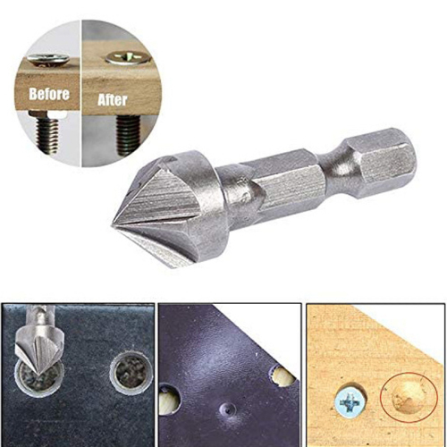 Five-sided chamfering and deburring countersunk 1/4" hexagon. Ideal for chamfering, deburring and countersunk holes.