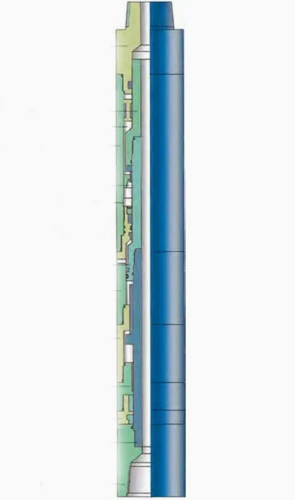 CSJ type super fishing jar effects the top jarring action is by means of hydraulic mechanism which allows taper piston to move in cylinder and stores energy by raising drill tool. When the drill tool attached on the top of super fishing jar is raised, enough time is provided for drill tool to store energy due to the damping action between taper piston and sealing body in pressure body of super fishing jar. When taper piston moves to release bore, the drill tool shall suddenly attract and produce an upward dynamic load along with the instant unloading of high hydraulic oil. The reliable impact working face is designed in the product structure to ensure that large jarring force is provided to stuck fish (drill tool ). A desire return mechanism is designed in order to make a reciprocating jarring action. In order to make a rotation for drill tool in down hole and a circulation for fluid, CSJ type of super fishing jar pass torque by means of spline and meanwhile enlarge the watercourse as far as possible to meet the tests with exception of fluid circulation and other applications.