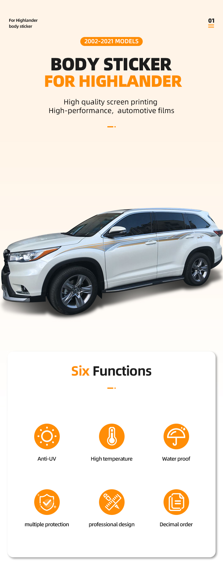 Sticker Car Decoration: Vinyl Decals and Body Stickers for Highlander1