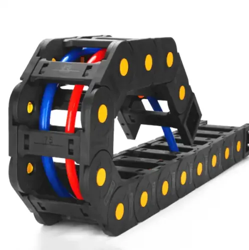 The high-quality drag chain is more difficult to rub up, and the debris under the rub is fine, is powdered, cut the product to see the cross section of the drag chain with the help of external forces to rub the surface of the plastic drag chain