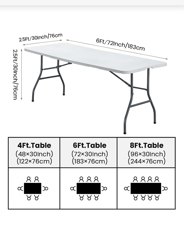 Size: | ?4FT(122*60*76CM),6FT(183*76*76CM),8FT(244*76*76CM),customize |