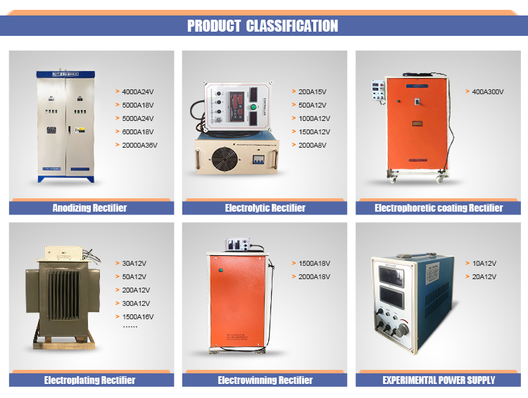 A: High frequency plating rectifier, Silicon controlled rectifier, Lab power supply,water treatment