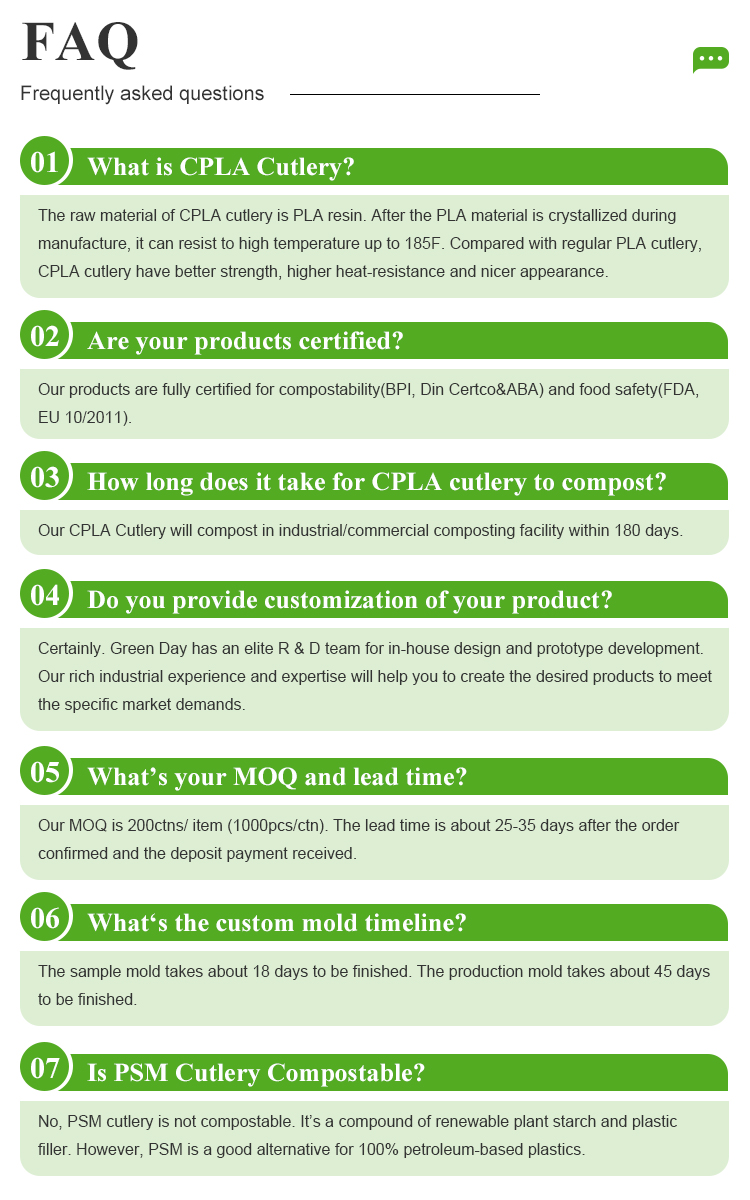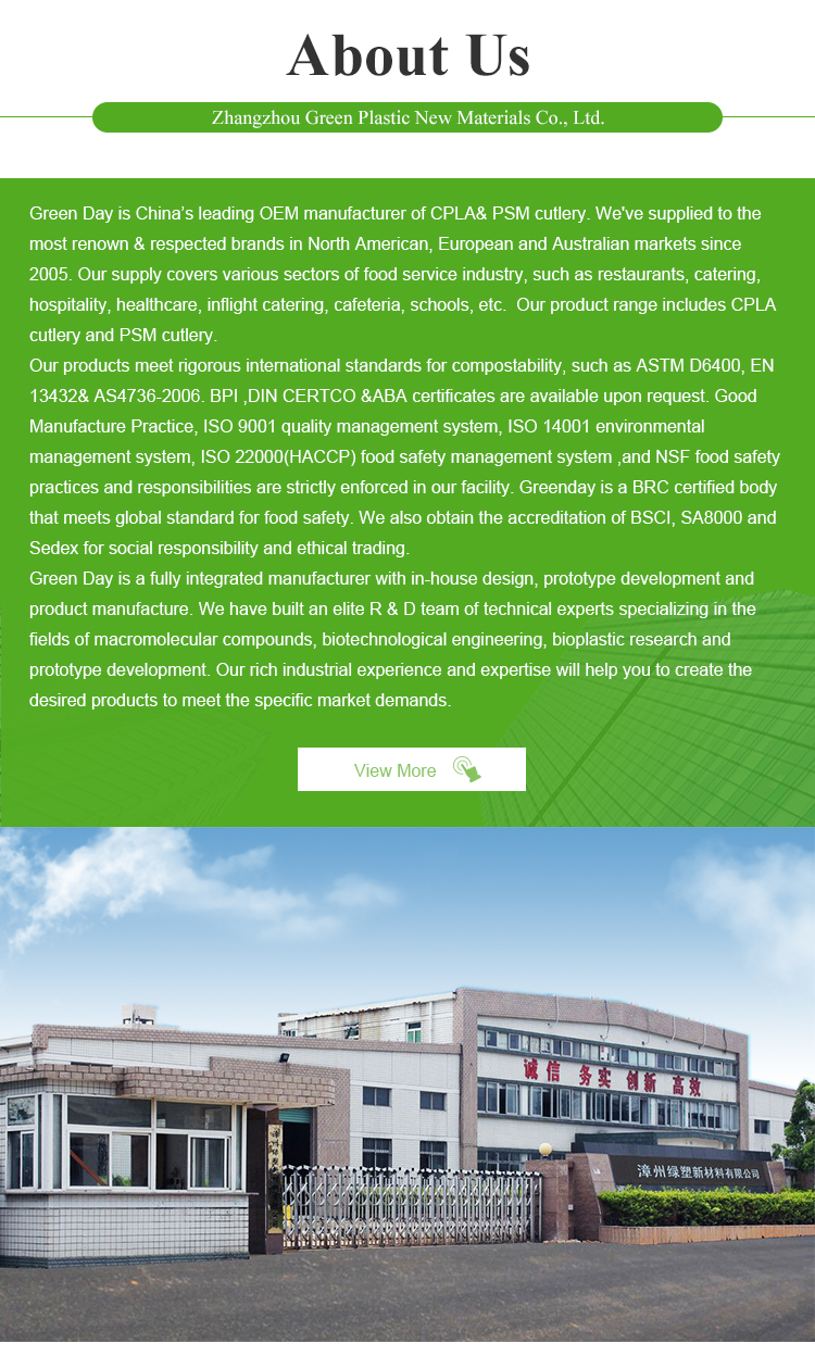 Our factory is China's leading OEM manufacturer of CPLA cutlery which have supplied to the most renown & respected brands in North American, European and Australian markets since 2005