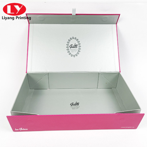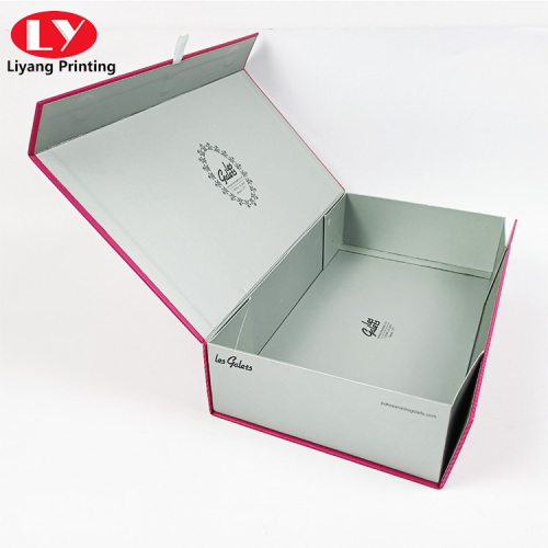 This folding box outside print Pantone color and logo use silver stamping , inside material is silver paper and print black logo , you can put clothes , glass bottle or others .