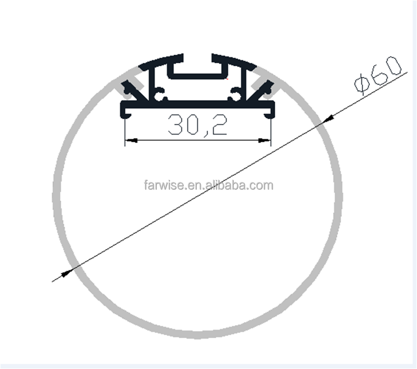 The fixture measures up to 60mm diameter. 1M profile housing is constructed of anodized extruded aluminum with a flange.