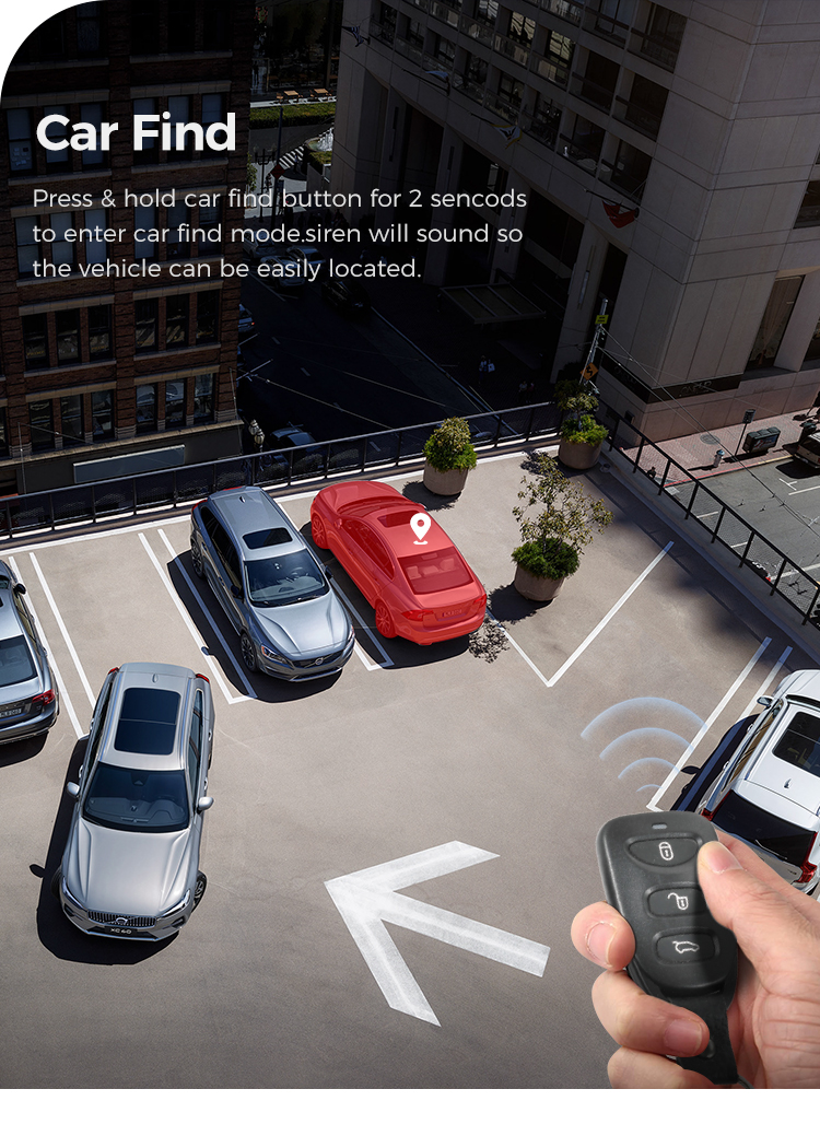 ? Lock/Unlock ? Trunk release negative ? Auto central lock ? Direction light ? Car find ? Electric /Vacuum door lock optional ? Remote control programmable ? 12-Pin ? Blue tooth upgrade optional ? Blue tooth PKE Upgrade optional |