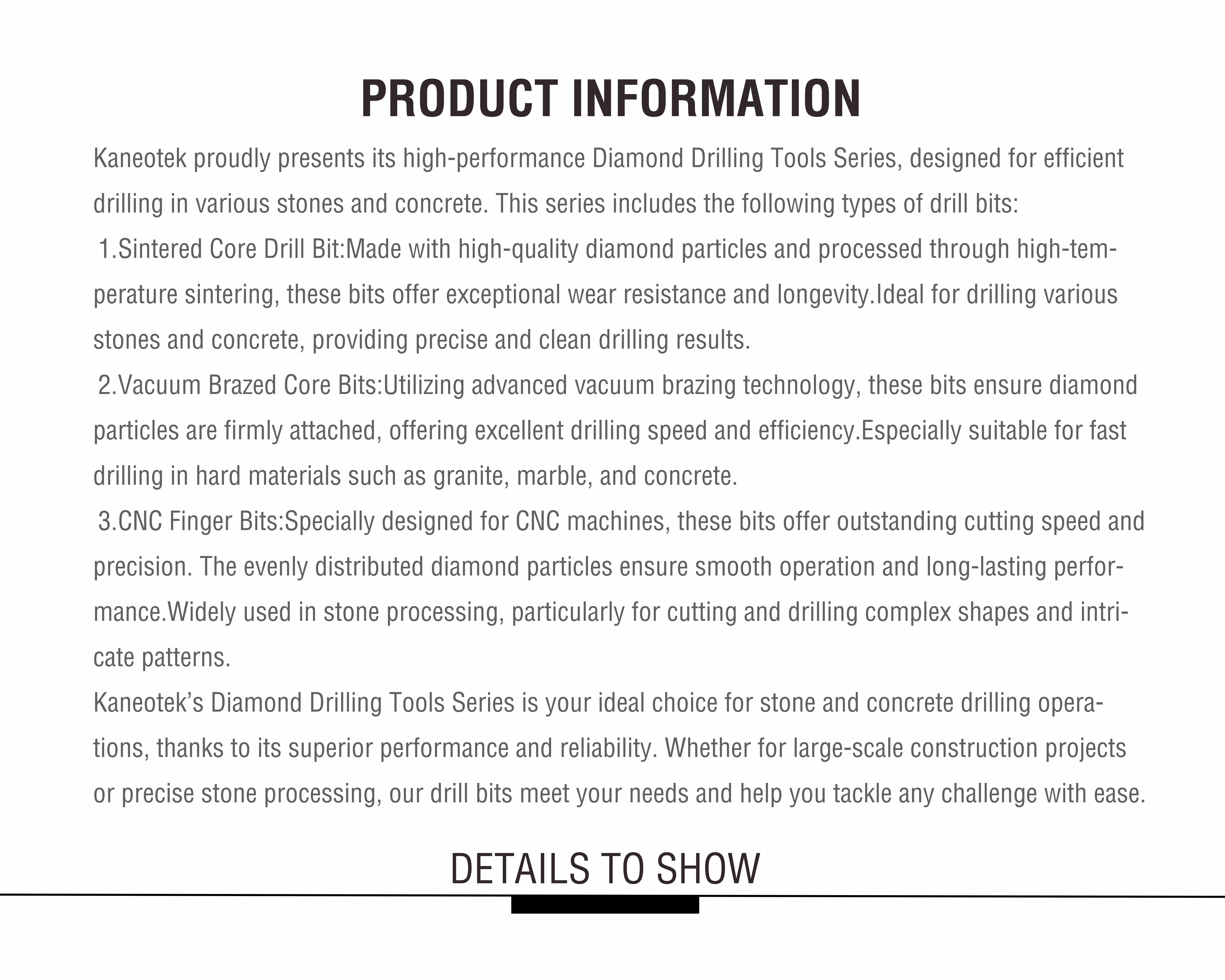 | Application | Stone, Drilling Hole in the stone, Such as granite, Marble, etc |
