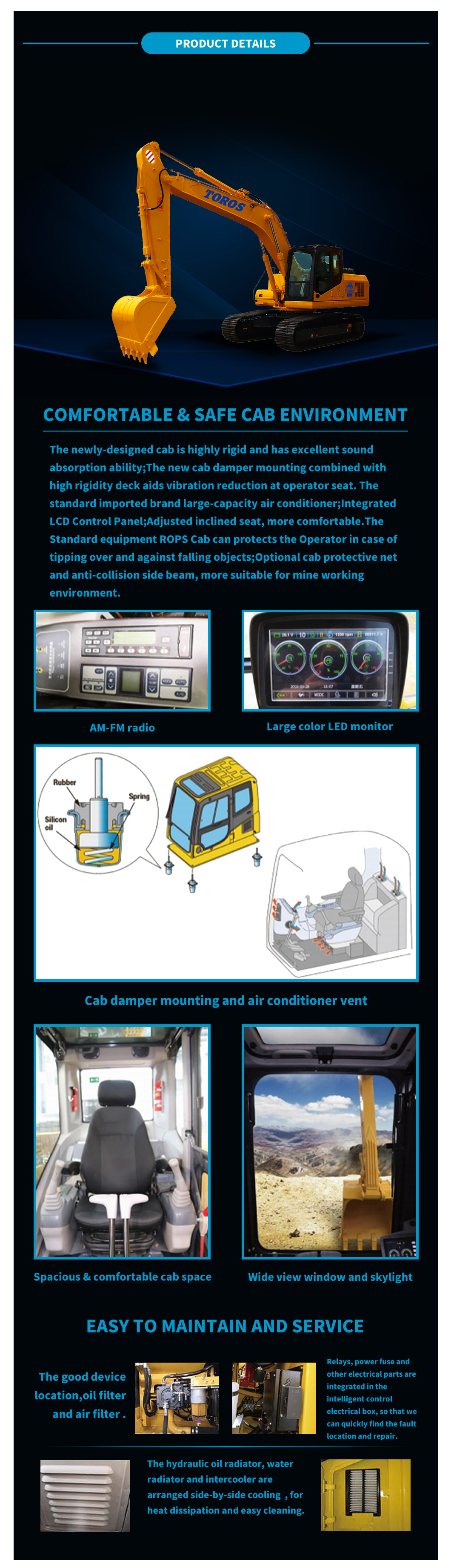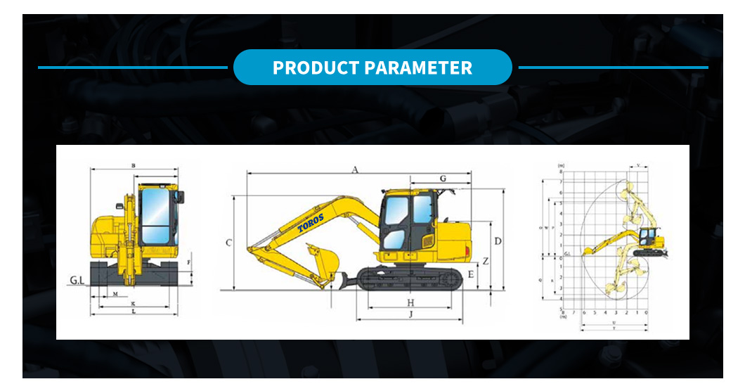 Volume of fuel tank (L) | 350 | E-Counterweight ground clearance (mm) | 1065 | T-Maximum excavating distance | 9865 |