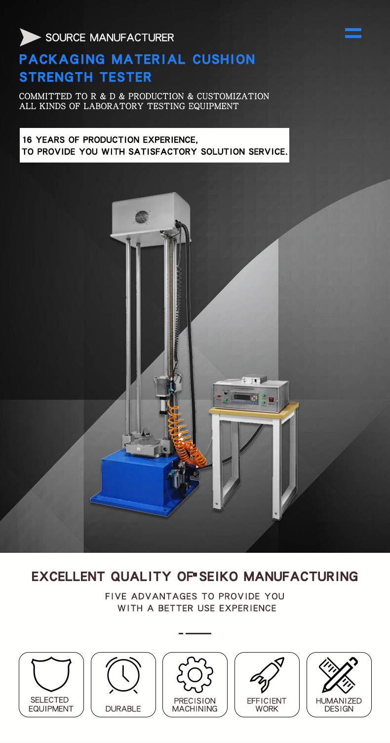 Packaging Material Cushioning Strength Tester Dynamic Performance Testing Machine for Cushioning Packaging Material The cushioning characteristics of materials are the basis of packaging structure design. Only by knowing the cushioning