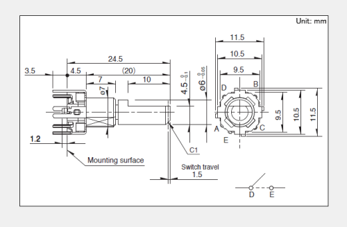 Press on switch travel 1.5mm