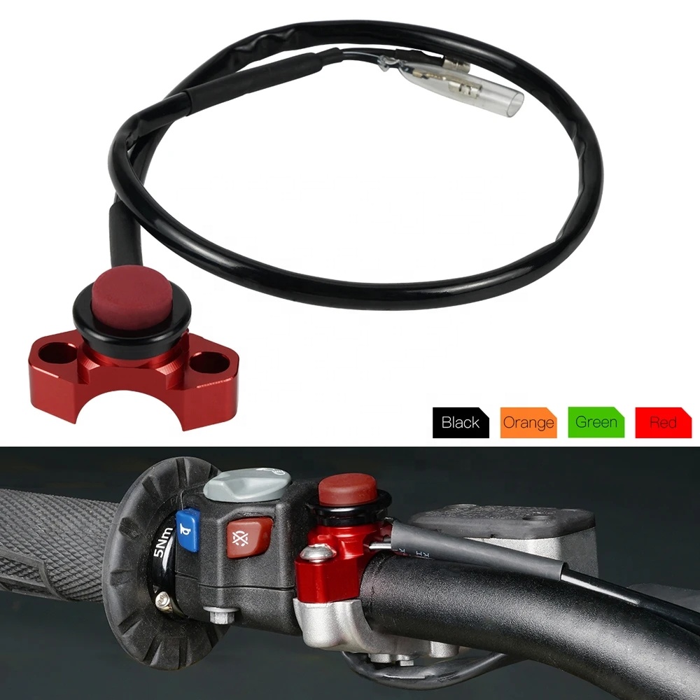 have a 30-32mm span between the clutch or front brake mounting bolts. The switch replaces the clamp that holds the clutch lever or front brake master-cylinder onto the handlebars. It eliminates one or two strap mounted switches completely from the motorcycle to make handlebar changes faster and easier. It also creates more space for handguards, lap timers and other handlebar mounted accessories. For those that ride electric start motorcycles, a second switch can be added to eliminate the stock start button. ? Product Details: -- Condition: 100% Brand New -- Qty: 1x Unit Switch Button -- Material: 6061-T6 Aluminum -- Color: ? -- Replaces the stock kill switch on all Carbureted off-road motorcycles -- Replaces the starter switch on Electric Start models -- Integrated into the clamp that holds the clutch lever or front master-cylinder -- Red sealed rubber boot button for prevent dirt, water and moisture -- Housing is CNC-machined from aircraft grade billet aluminum -- Anodized finishing -- Easy bolt-on Perch install -- Engine Kill/ Engine Starter Switch sold separately -- Easy installation. Install by splicing the two wires ? Fitment: Will fits for Aprilia, Arctic Cat, ATK, BMW, Beta, Can-Am, Gas Gas, Honda, Husaberg, Husqvarna, Kawasaki, KTM, Polaris, Suzuki, Yamaha etc. for Yamaha YZ/YZF/WRF/FX all for Honda CR/CRF/CRX all for Kawasaki KX/KXF/KLX all for Suzuki RM/RMZ all for KTM all (Brembo only) for Husqvarna all (Brembo only)