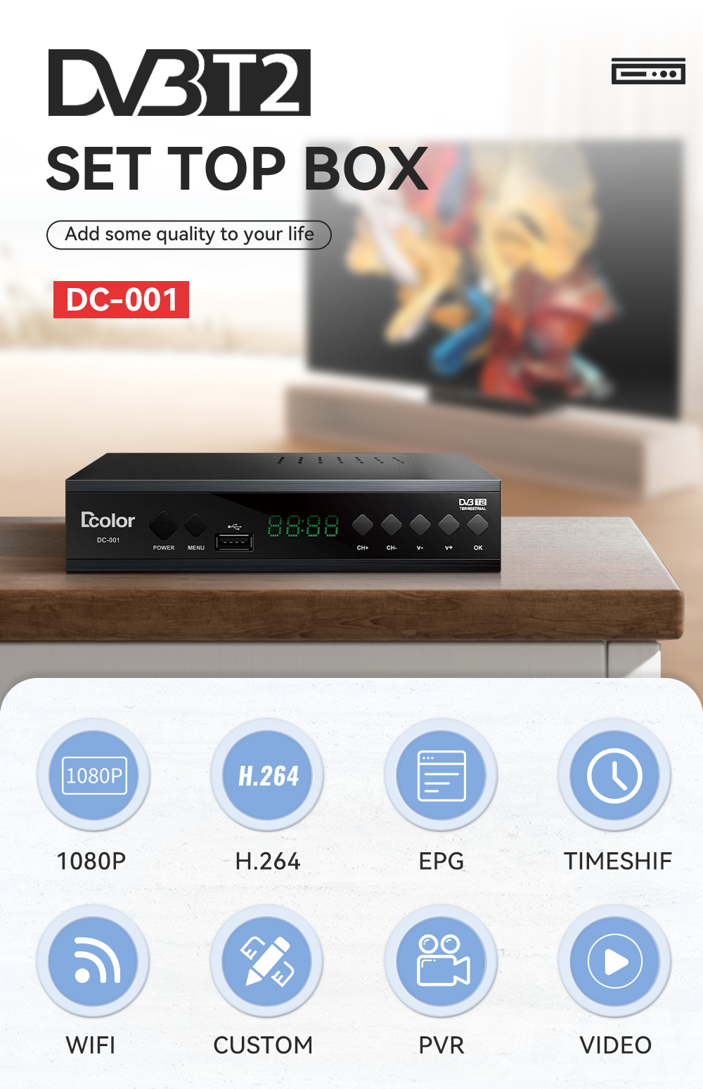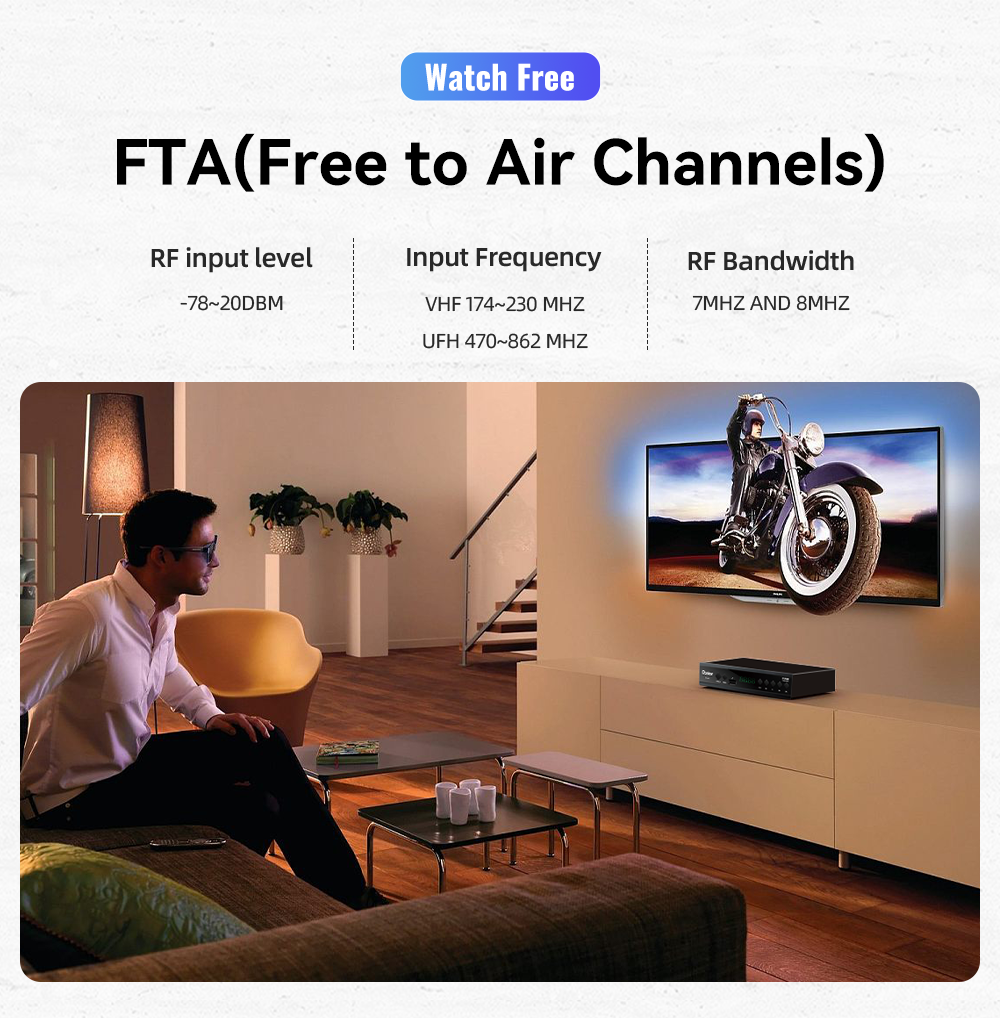 1.DVB-T2/T compatible, support Free to air channels |