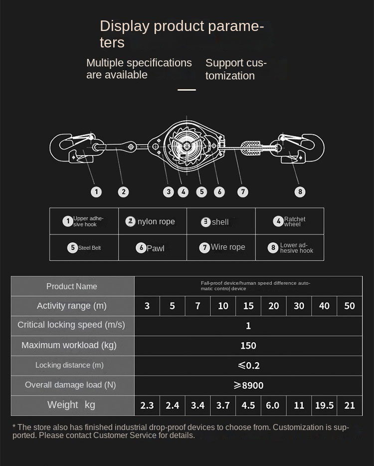 Active radius | Braking speed | Rated load | braking distance | Failure strength | ||||