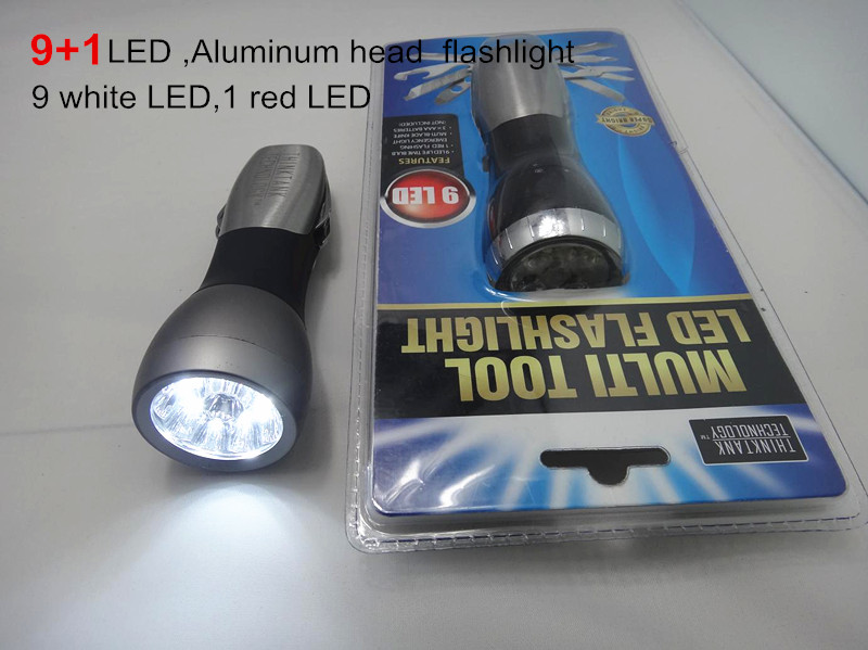 1. 9+1 bright LED Flashlight (the color of LED you can choose any color which you are insterested ,for example white,yellow,purple, red and so on)